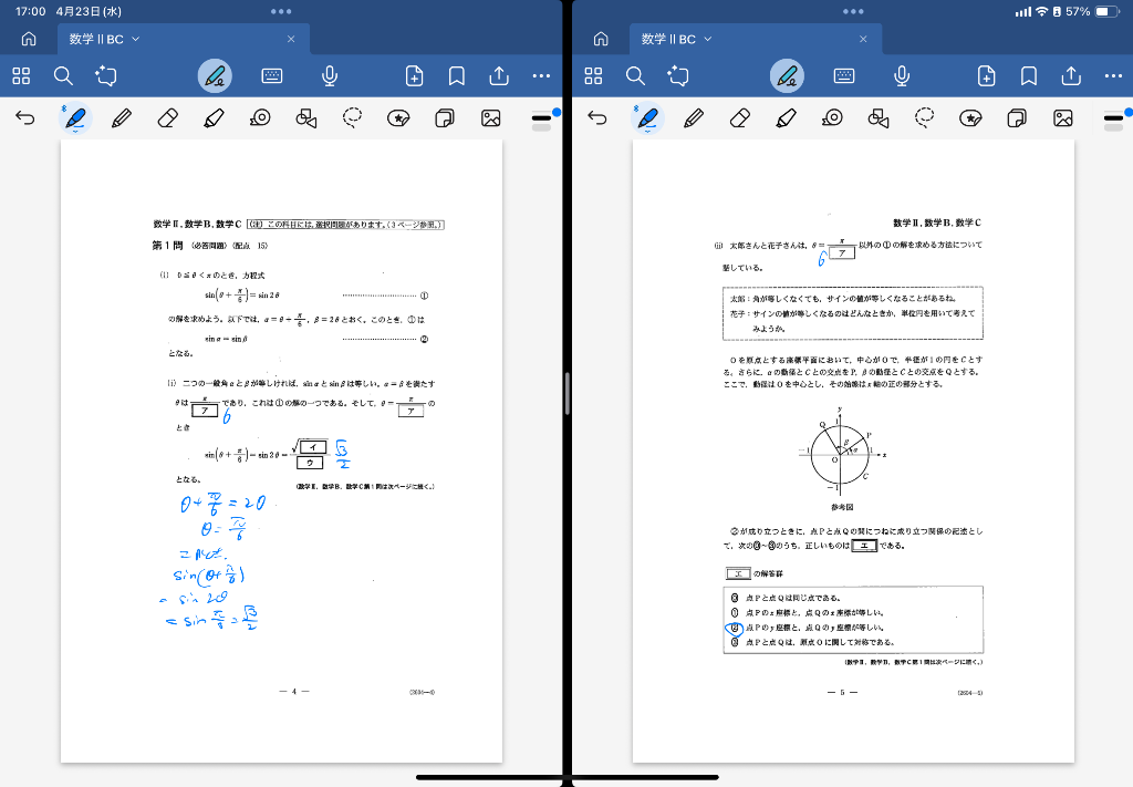 単位円を使って考える三角関数の問題でした。